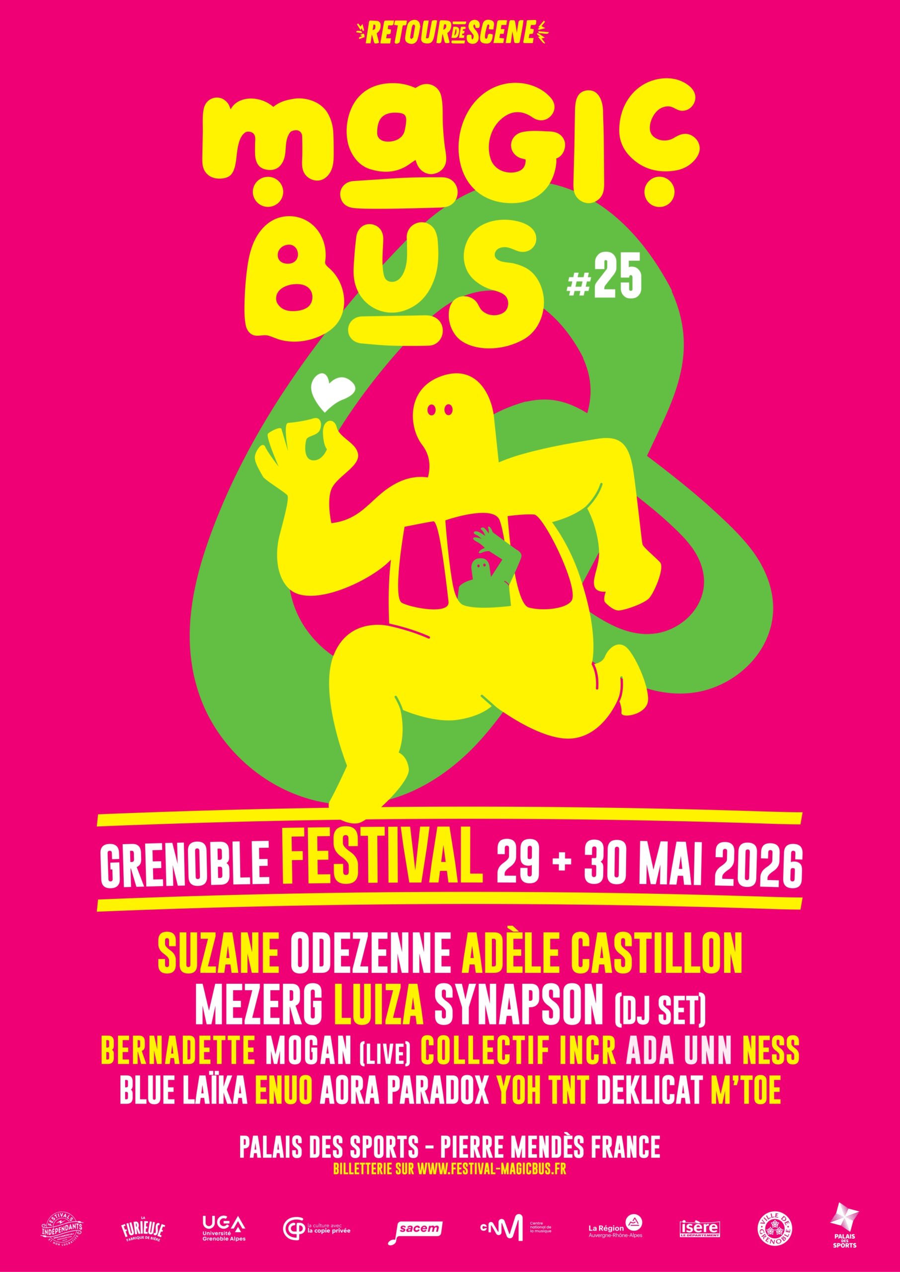 Magic Bus est un festival de musiques actuelles qui a lieu chaque année en plein air à Grenoble au mois de mai. Historiquement, la première édition eu lieu en 1999 afin de soutenir le disquaire indépendant “Magic Bus”. Cet événement se transformera tout naturellement dès la seconde édition en festival de soutien et de promotion à la scène locale. Le festival a pour objectif principal d’être une vitrine éclectique des talents émergents de l’agglomération grenobloise dans le secteur des musiques amplifiées.