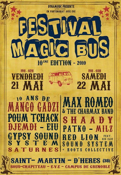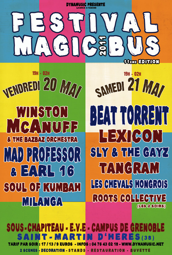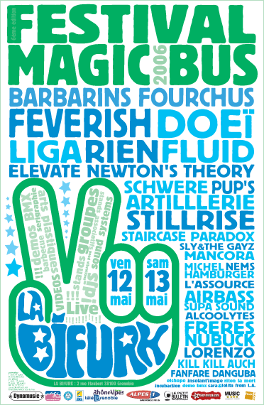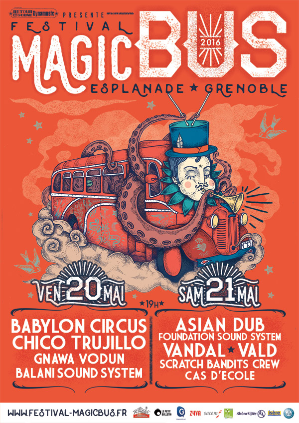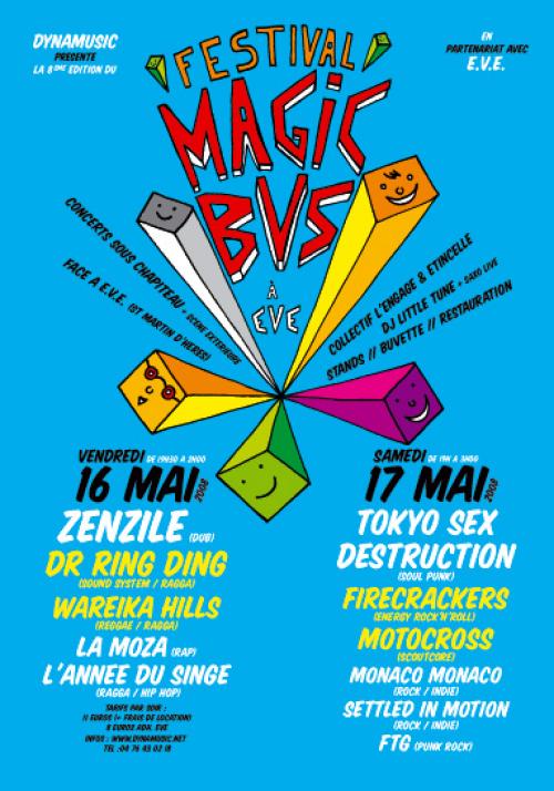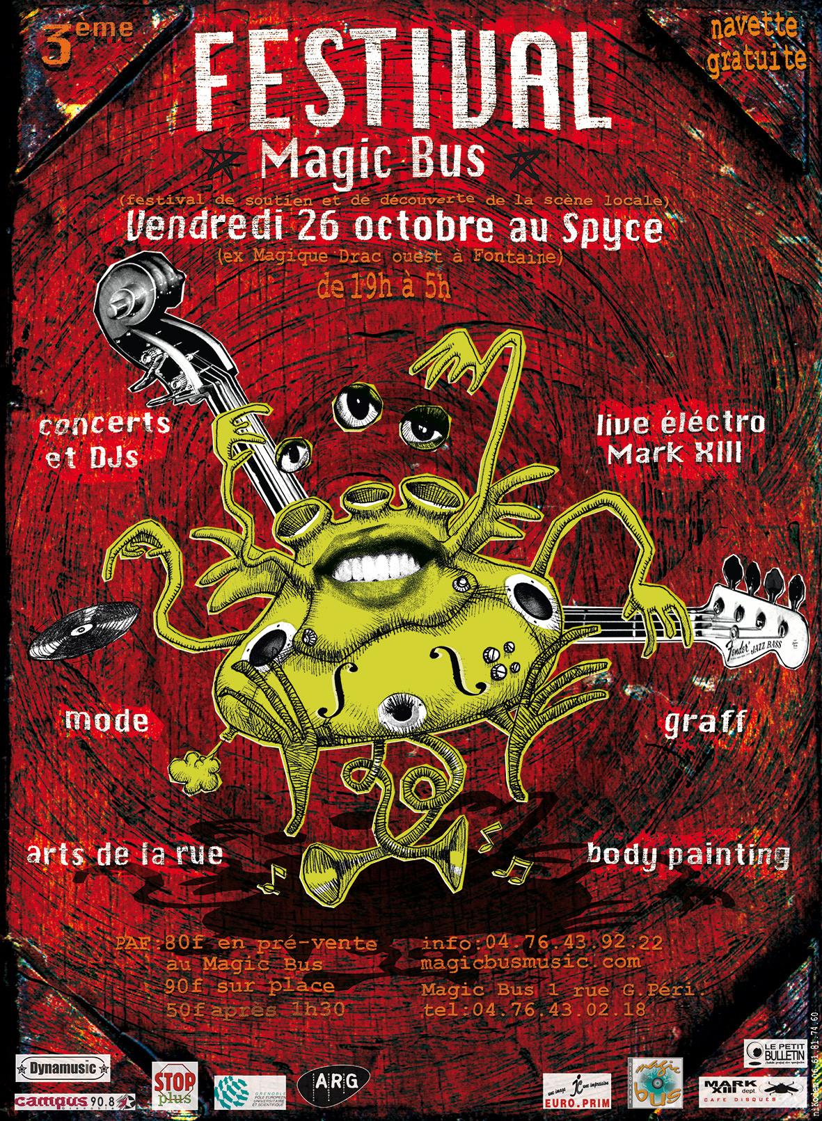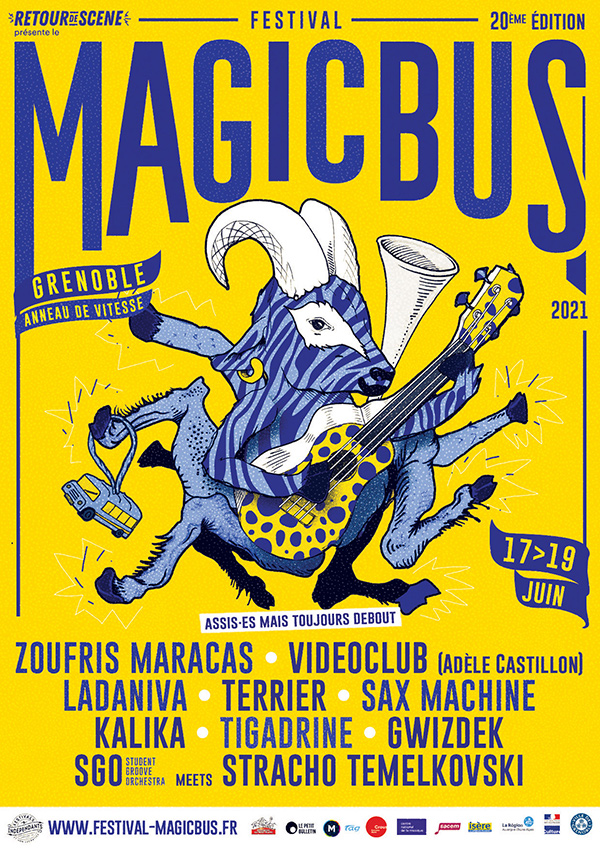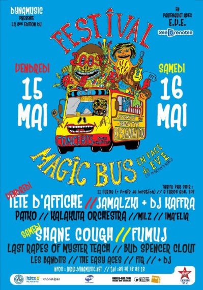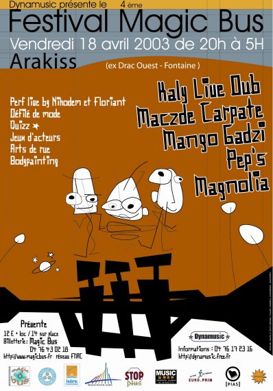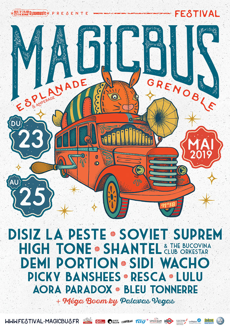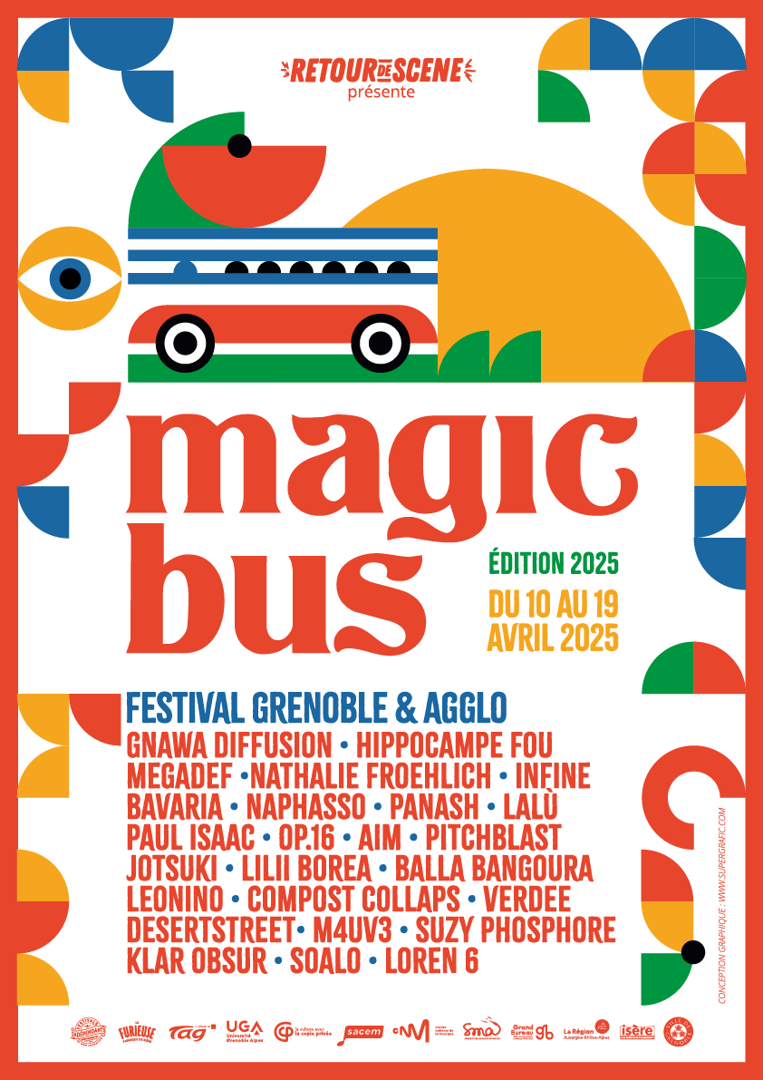 Magic Bus est un festival de musiques actuelles itinérant, qui a lieu chaque année au mois de avril/mai, à Grenoble. La première édition eu lieu en 1999 afin de soutenir le disquaire indépendant « Magic Bus » et de mettre en lumière la scène locale florissante de l’agglomération. 25 ans plus tard, Magic Bus se veut toujours un rendez-vous chaleureux, convivial et dédié à la découverte d’une programmation ouverte aux différentes esthétiques musicales.
